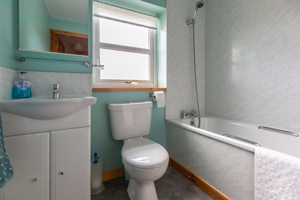 The upstairs lounge is comfortably furnished and has a flat screen television and DVD player. There is central heating and WiFi throughout the cottage.